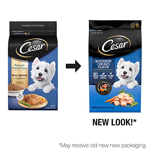 About this itemProduct detailsGive your dog a seat at the dinner table with CESAR Rotisserie Chicken Flavor and Spring Vegetables Garnish Dry Dog Food. Made with real chicken as the first ingredient, this gourmet dog food features tender pieces that will make your dog dance around their bowl come dinnertime. CESAR Food for Dogs is also deliciously crafted with 26 nutrients small dogs need to stay healthy. Serve your little furry companion a savory and nutritious meal with CESAR Dog Food. Contains one (1) 5 lb. bag of CESAR Rotisserie Chicken Flavor With Spring Vegetables Garnish Dry Dog Food CESAR Dry Dog Food is made with real chicken as the first ingredient for a taste dogs love This gourmet dog food is specially crafted with 26 nutrients that small breed dogs need Your adult dog will adore the delicious tender pieces included within error:We aim to show you accurate product information. Manufacturers, suppliers and others provide what you see here, and we have not verified it. See our disclaimer