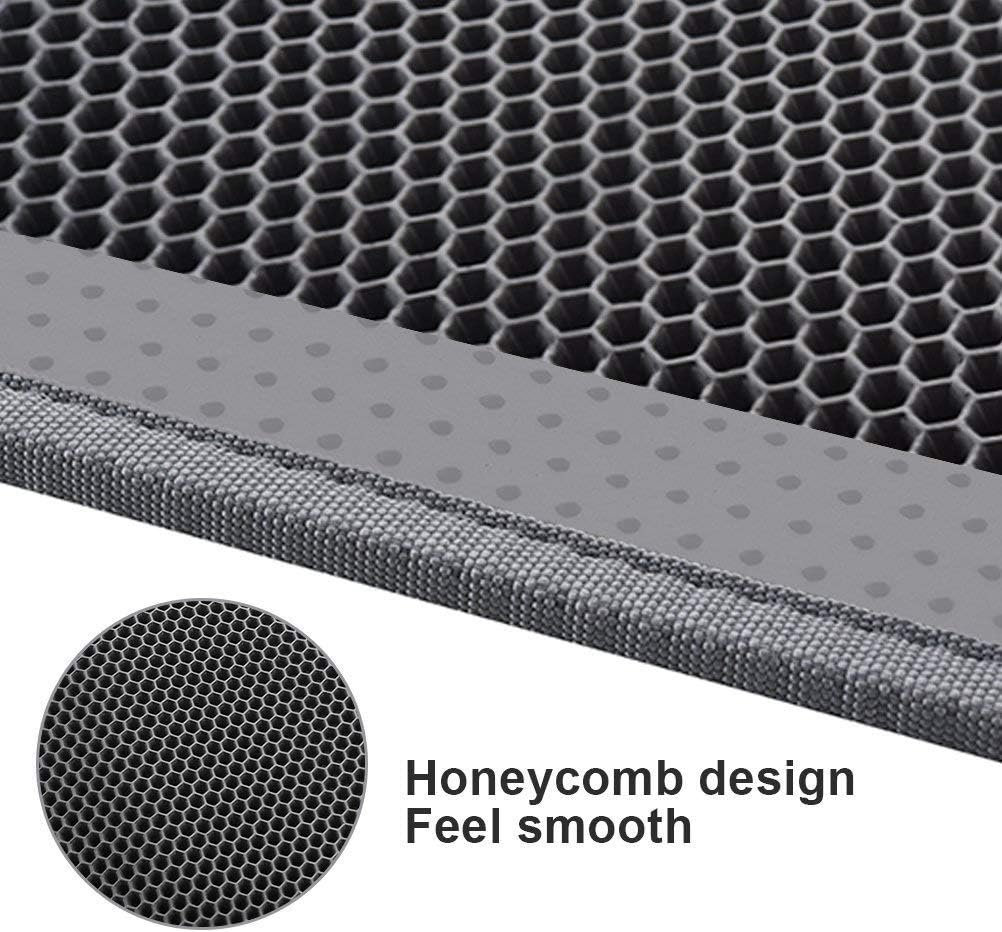 - Anti Tracking EZ Open Edge Litter Mat: Double-layer honeycomb design helps you gather the litter. You just pick up the mat and all the litter falls through and then dump it back in the litter box make it recycling. BEST MAT EVER! No more getting litter stuck to my feet on a daily basis! Large holes is large enough to catch and trap litter. Suitable for lots of type of litter, and kitty litter boxes,hooded,self cleaning litter box.
